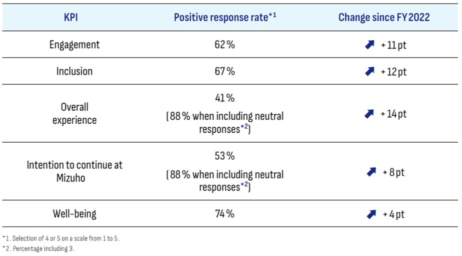 We have verified some positive outcomes after our initial focus on fostering alignment with Mizuho's Purpose. Therefore, we have shifted our focus to fostering alignment with Mizuho's Values while continuing with multi-layered initiatives.